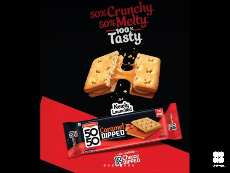 Britannia Industries has expanded its 5050 portfolio with the launch of a caramel-dipped layered sandwich biscuit, marking a continued push into the premium snacking segment.